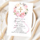 Pink floral wreath bow cross girl baptism invitation