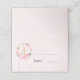 Guide guests to their seats with this elegant religious place card. The design features a delicate pink watercolor floral wreath surrounding a gold cross, accented by a graceful pink ribbon. This card is a beautiful and functional addition to the reception table for a girl's baptism, First Holy Communion, or Confirmation.