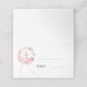 Guide guests to their seats with this elegant religious place card. The design features a delicate pink watercolor floral wreath surrounding a gold cross, accented by a graceful pink ribbon. This card is a beautiful and functional addition to the reception table for a girl's baptism, First Holy Communion, or Confirmation.