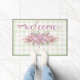 Pink Floral Wreath Green Gingham Doormat