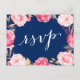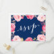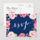 Pink Floral Wreath Navy Blue Wedding RSVP Reply Invitation Postcard