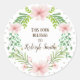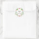 Pink Floral Wreath on White with Grey Hearts Classic Round Sticker