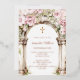 Celebrate this sacred milestone with elegance and light. This Pink Floral Arch Beige Confirmation Invitation features a whitebackdrop framed by delicate pink florals and accented with real rose gold foil lettering for a refined, luminous finish.