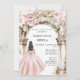 Celebrate her milestone with grace and charm. This pink florals arch dress Sweet 16 invitation blends romantic floral motifs and a classic dress silhouette — a beautiful choice for both printed and digital formats.