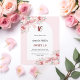 A white arch frame and light pink background. Decorated with pink flowers and pink bows. Personalise and add a name, age and details.