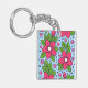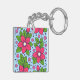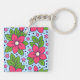 Pink Florals with Bold Petals and Green Leaves Key Ring