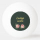 Pink flower and leaves on dark green ping pong ball
