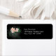 Address labels with an illustration of some delicate pink blossoming flowers with green swirlies and leaves on a black background with some light grey shading around the flowers to accentuate and illuminate.