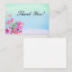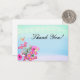 Pink daisy-like flowers and three butterflies on a green, blue and lavender ombre background makes a beautiful and elegant Thank You Notecard. The back is left blank for your personalised message.