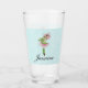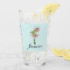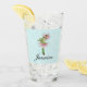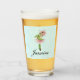 Cute vintage pink flower fairy with customisable text on blue and white patterned background