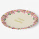 Pink flower garland on ivory Happy Birthday Paper Plate. Text can be personalised for other events!
