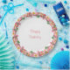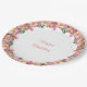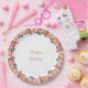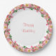 Pink flower garland on white Happy Birthday Paper Plate. Text can be personalised for other events!