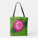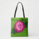 Pink Flower Green Leaves Artisan Crochet Print Tote Bag