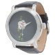 Pink Flower green leaves on dark grey Mallow Watch