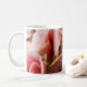 Mug with lovely image of pink flowers. Very romantic. Add text if you like. Customisable.
