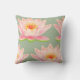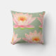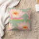 Pink Flower Pattern on Laurel Green Throw Pillow