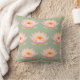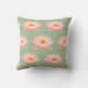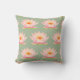 Pink Flower Pattern on Laurel Green Throw Pillow