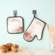 Pink Flower Script Terracotta Personalised Oven Mitt & Pot Holder Set