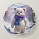 white winter snow white mountain snow covered trees pink flower tree blossom middle white bear cute flower pattern blue purple two-tone muffler scarf winter wear cute white bear