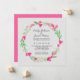 Pink flowers with greenery branches and leaves design frame the top and bottom of the invitation. A coloured background with the font gives it the look of elegance. Personalise this template to add your information. The design is a floral wreath and can be customised to fit inside the card. Click to customise further to make more changes. Everything is customisable.