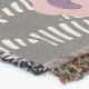 A quality printed throw has its advantages. This is a much finer weave throw than its loopier cousins, and though lighter, it is worth the investment for custom room accessorizing. The back is much prettier than the typical brown, and the fringe on the long sides very vivid, the selvage nicely done. Before photographing, I washed the throw in cold water, delicate, with a thicker woven throw the same size. On tumble dry low, this throw was dry in half the time as the other. This is a very practical quality if you use throws for furniture covers or to wrap up in frequently. The sleekness of the fabric makes it a great layer for accenting or protecting without the feeling of sitting on too much stuff. Perfect for napping or when you feel a light chill coming on. The color printing is beautiful and on this fabric, matched the design and color of my Photoshop image. This is an advantage for blending room fabrics and colors. The fringe on the short sides prints the colors from the design image and therefore varies from the side fringe. I streaked a white fractal line through the plaid pattern to give the illusion of weaving. This printed as crisp as an illusory thread, and put some white in the short side fringe, showing another advantage of print vs loomed- for artistic purposes, line lines, detail, and color integrity can be planned and preserved. My loomed throws have color limitations and more of a needlepoint texture. Print throws reproduce an exact image. The throw felt a little stiff straight out of the package, but this went away in the first delicate wash. Of course I searched the wash water for ink or bleeding and there was none.