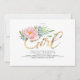 Blush pink watercolor flowers and gold glitter calligraphy baby shower invitations