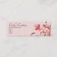Trendy skinny business card design of pink abstract flowers on a pink and white striped background with black text. Customisation is easy.