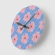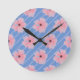 Pink Flowers And Stripes Wall Clock