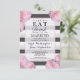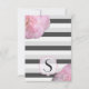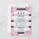 Pink Flowers & Black, Grey, & White Stripes Invitation