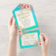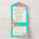 Pink Flowers Blue Green Gold Confetti Wedding RSVP All In One Invitation