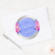 Make a lasting impression with this elegant floral design featuring pretty pink and purple flowers with a modern silver frame on a light blue background.