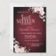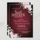 Pink Flowers Burgundy Sweet 16 Invitation