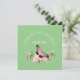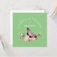 Elegant design features watercolor pink rose spray bouquet with added pink butterfly on green background. Add couple's name and date or other special message