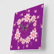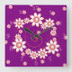 Pretty wall clocks that feature a pattern of swirls and pink flowers on a purple background. These cute customised clocks come in 2 shapes- square and round- and would look lovely in a girl's bedroom.