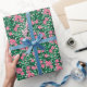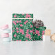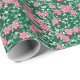 Sprays of pink flowers and soft green leaves on a dark, forest green background - digital design
