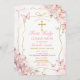 Elegant Blush Pink Gold Frame Cross Christening Primera Comunión Invitación
