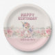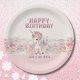 Pink Flowers Girl Cute Unicorn Birthday Paper Plate