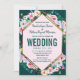 Pink Flowers Gold Trim Emerald Jade Wedding Invitation