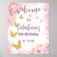 Pink Flowers Golden Butterflies Party Welcome Poster