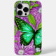 Pink Flowers Green Butterfly | Personalised Name Case-Mate iPhone Case