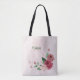 Beautiful romantic tote bag featuring pink and dusty rose flowers and some green leaves .