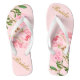 Pink Flowers Green Leaves Watercolor Golden Script Bride Flip Flops