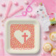 Pink Flowers Heart & Christian Cross Women's Paper Plate