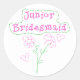 Pink Flowers Junior Bridesmaid Classic Round Sticker