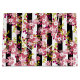 Pink flowers , floral, pink , white and black, stripes, retro, summer