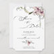 Pink Flowers Lilies Wedding Save The Date Card. Invitation wedding with handwriting and Sweet pink flower, light blue perfect for elegant and romantic wedding.