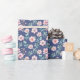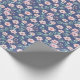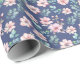 Pink Flowers Meadow Navy Blue Wrapping Paper