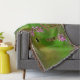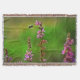 Pink Flowers And Bee Bubbles throw blanket Pretty Pink Loosestrife flowers and bumble bee against green with pink bubbles/dots..