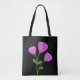 Features a simple pink hand-drawn flower design with gold foil detailing, on a black background.