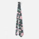 Pink flowers on dark green seamless pattern tie